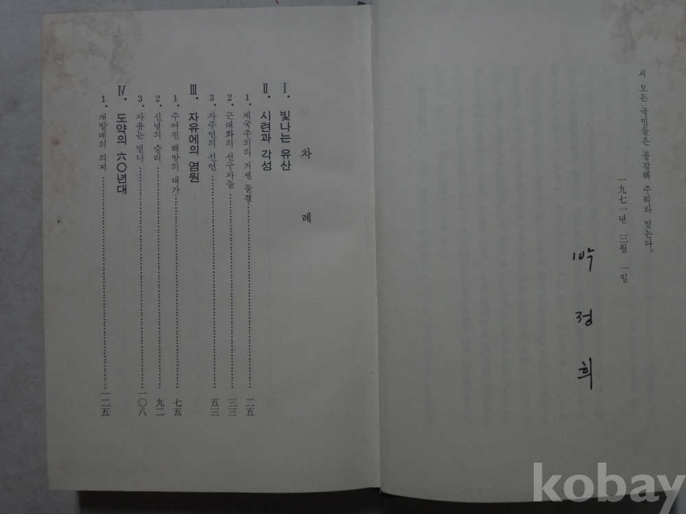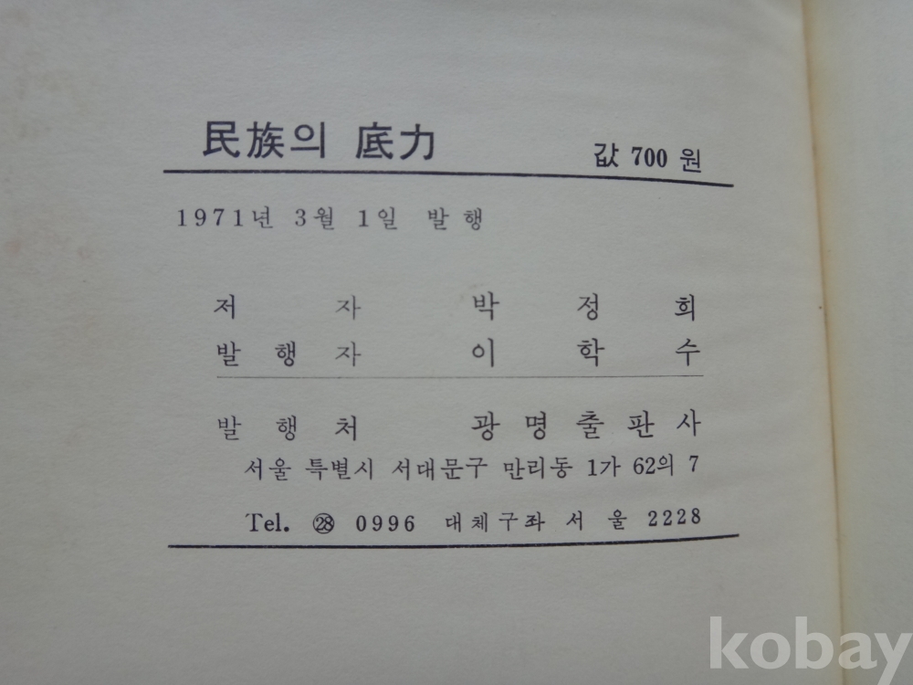 민족의 저력 - 박정희 저 (1971년, 광명출판사)