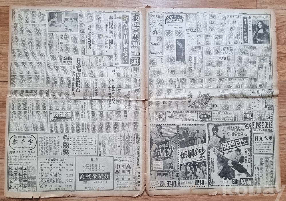 구성: 총 4면 전면 (정치, 경제, 사회, 문화 광고 포함)