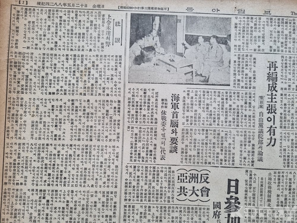 정치 및 사회 (1면 핵심 뉴스)"태창(泰昌) 특융 사건 보고":