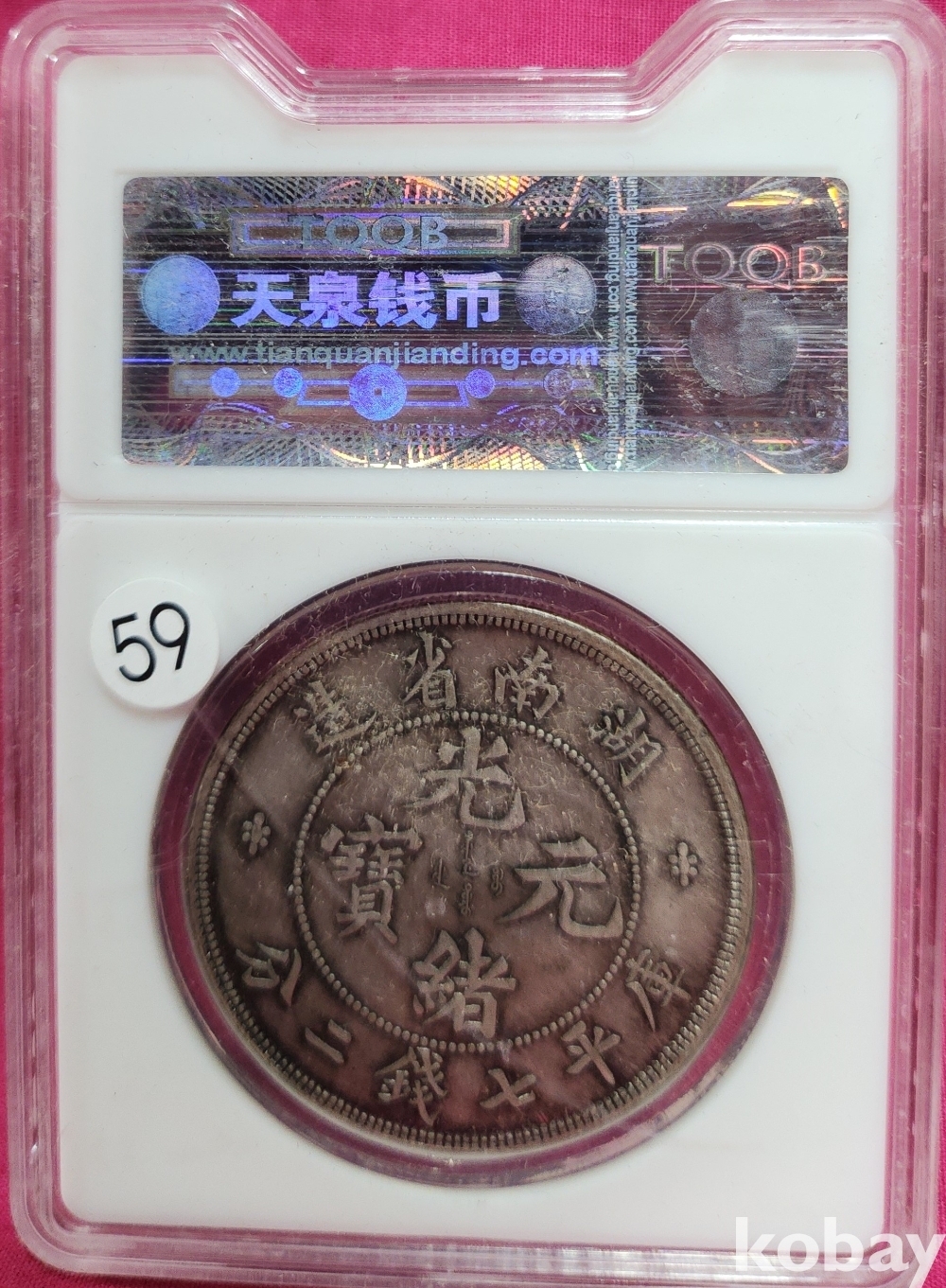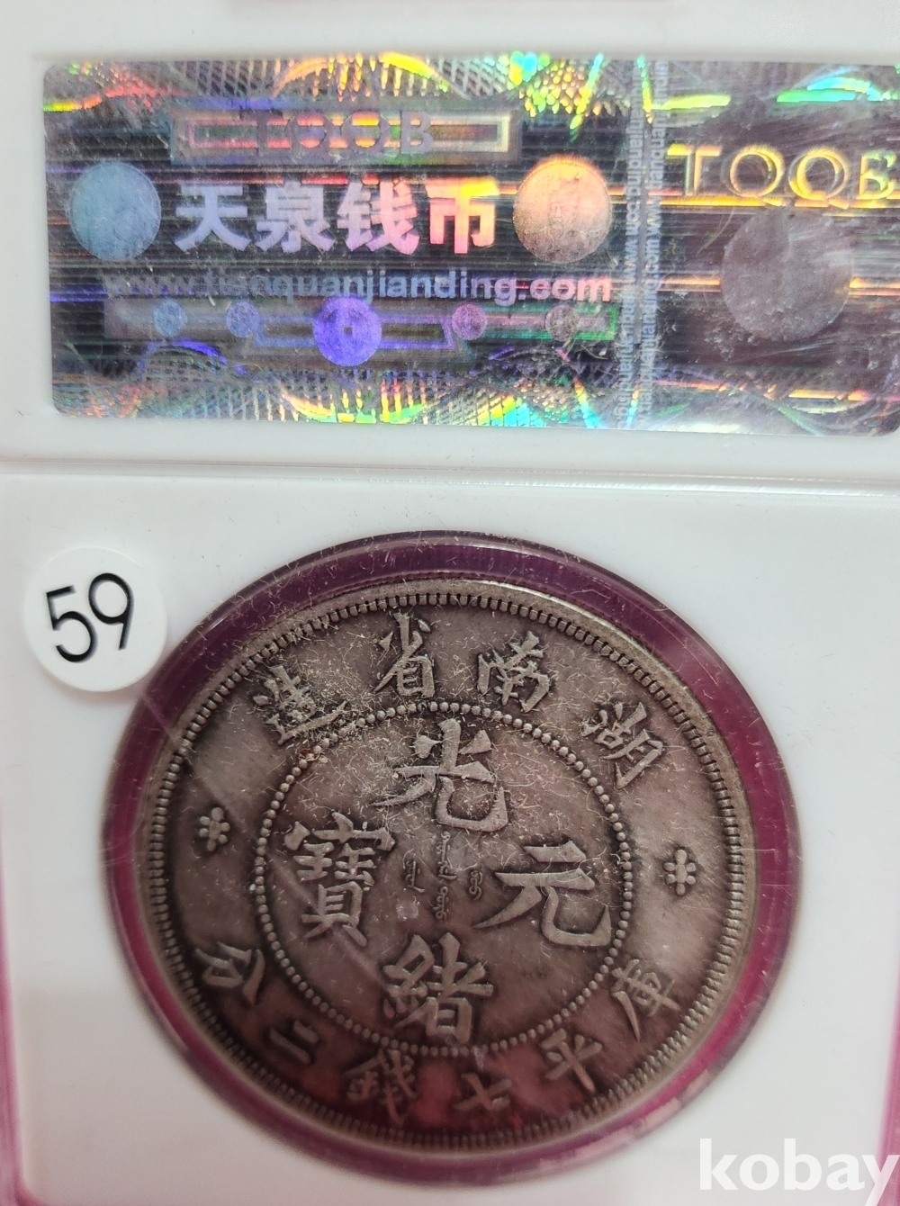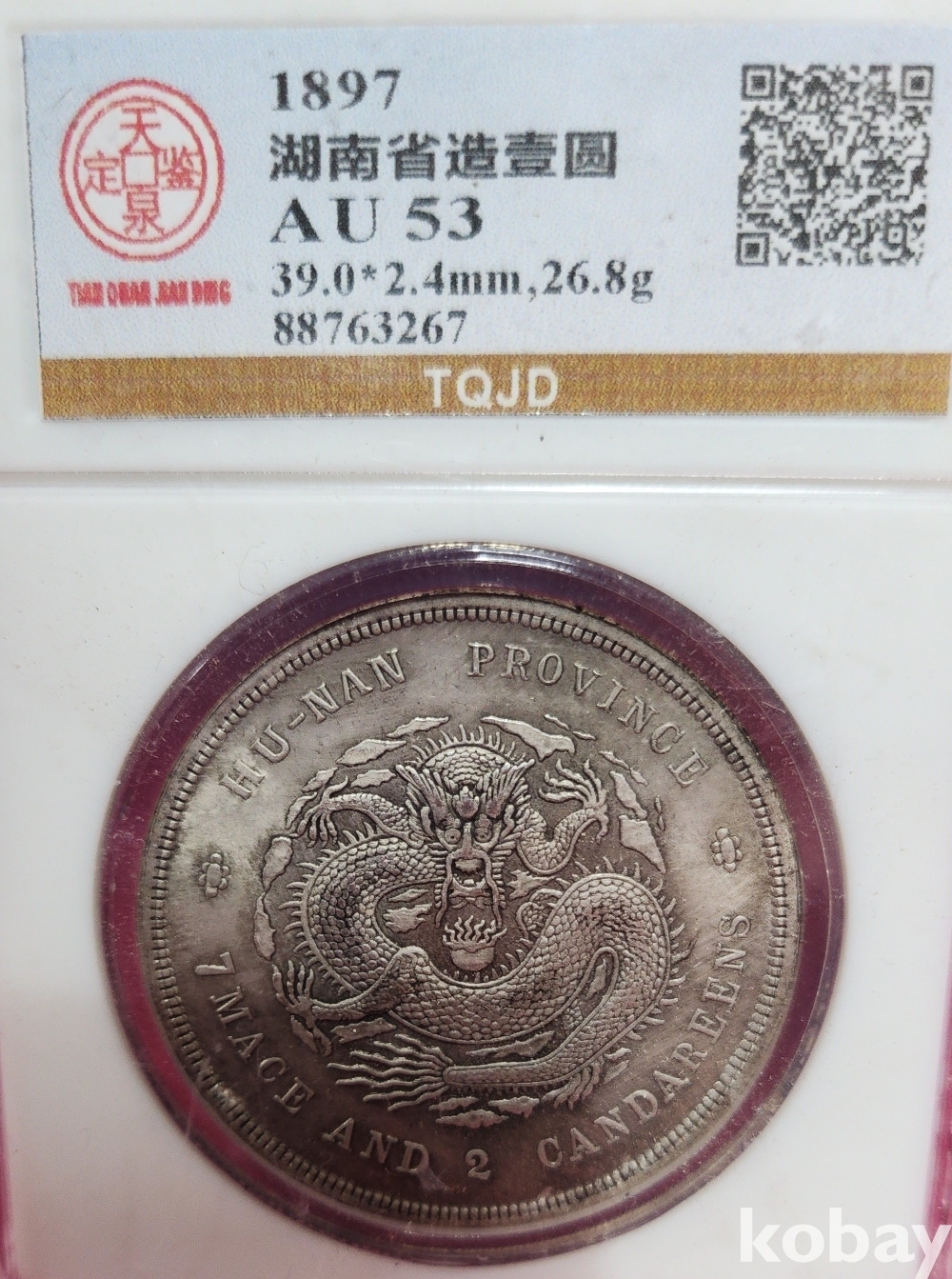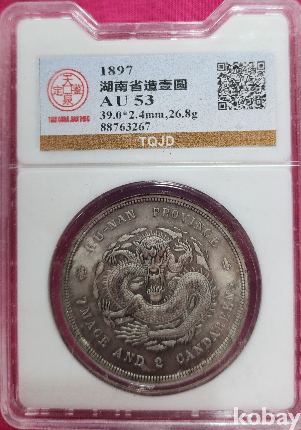 1897년 큐알코드(QR CODE)가 함께하는 은색 광서원보 (光緖元寶) 화패로 밀봉된 상태입니다,