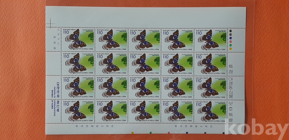 1994년 발행 특정 야생동.식물 보호 특별(제1집) 20매 전지 2종 세트 입니다.