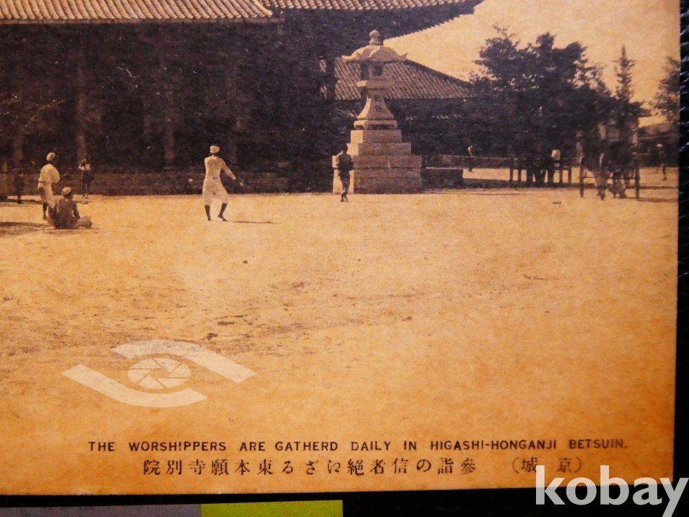 ▣근대한국엽서(진본): 참배하는 신사가 끊어짐이 없는 동본원사 별원의 모습, 야구하는 아이들/1매.