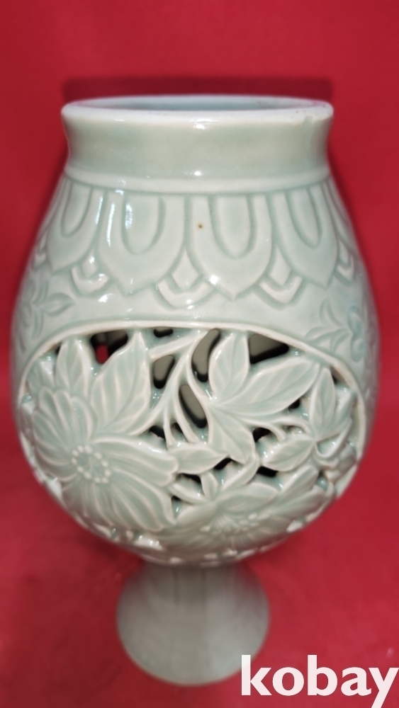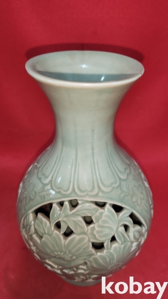 청자 화훼문 투각 병입니다,
