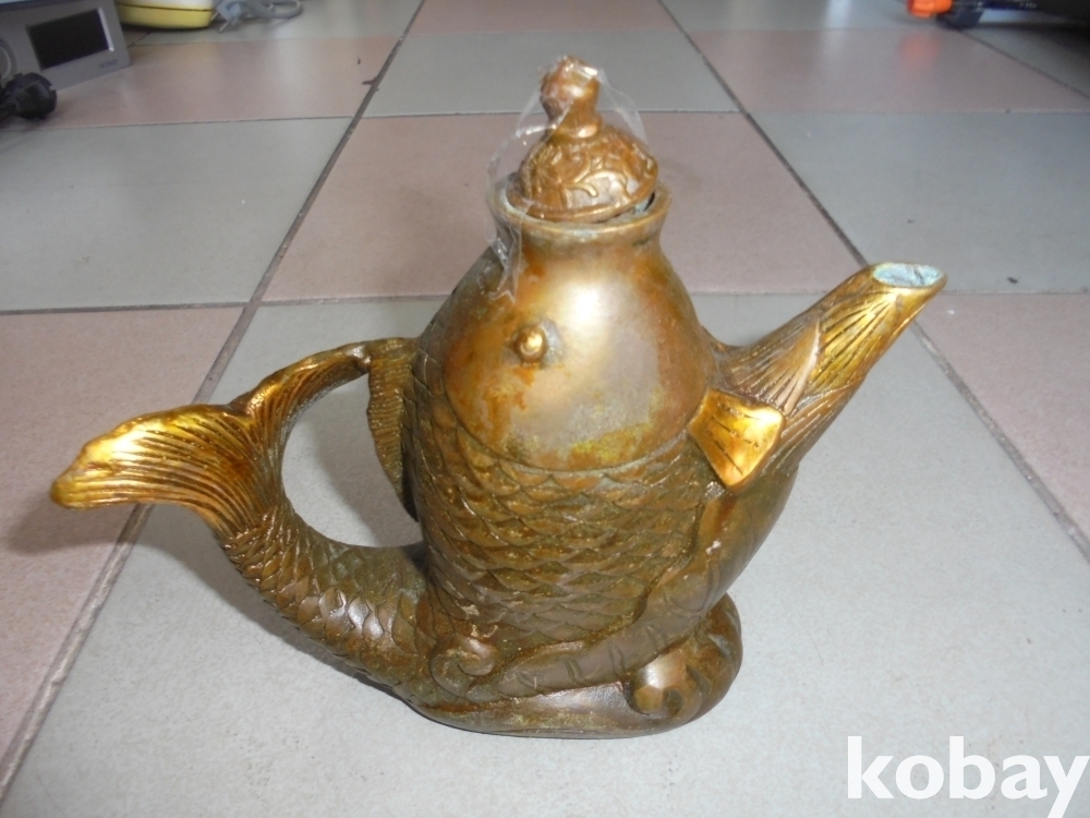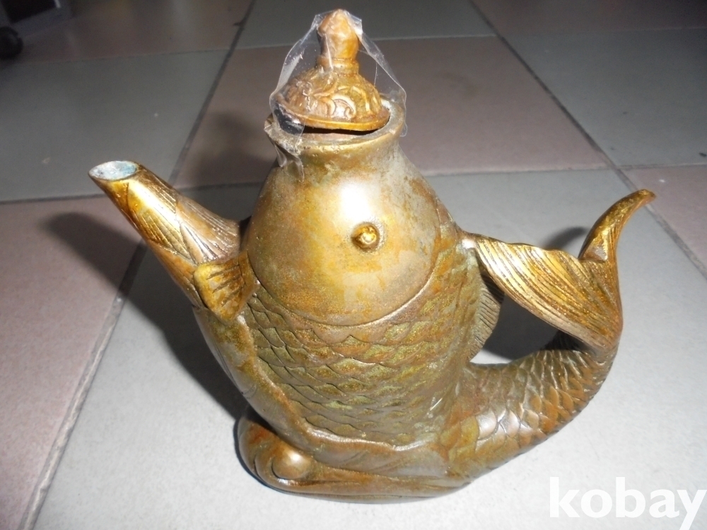 등과 출세 자손재산 지킴 건강등 잉어가 최고인기품으로 주자와 꼬리에 황금칠하여 최고의 예술품으로 만든 유기잉어주전자