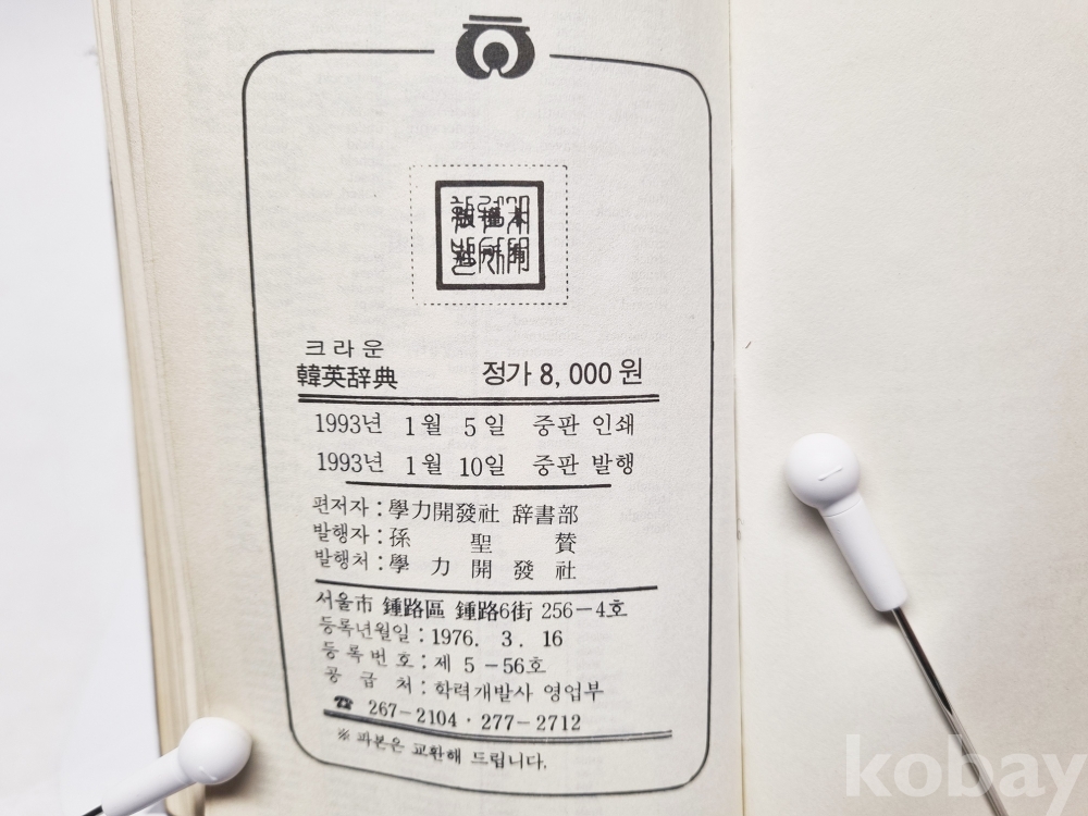 도서명: 크라운 한영사전 (크라운 韓英辭典)