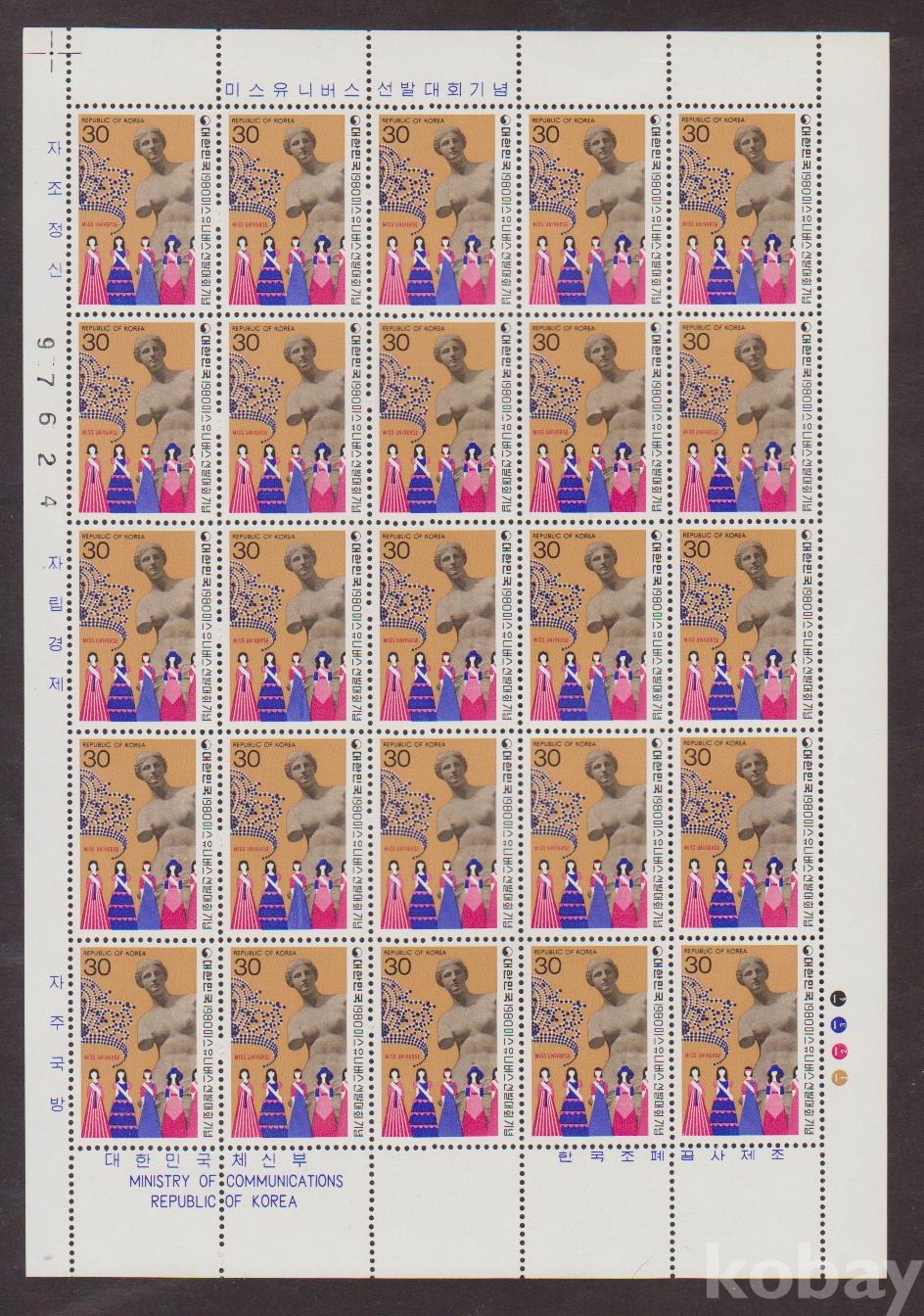 (한국전지) 11980.7.8 미스유니버스 선발대회 sheet of 25 MNH
