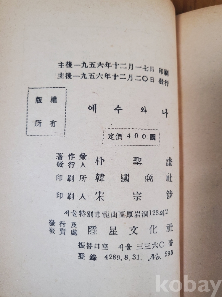 1. 예수와 나, 박성겸, 은성문화사, 1956년, 239쪽, 상태 상, 사진 참조