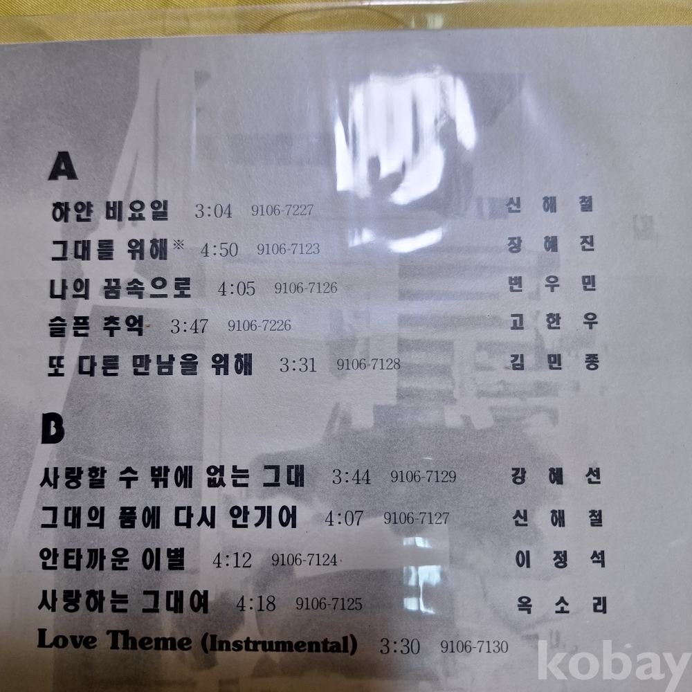| 자켓상태 | EX : 약간의 마모, 모서리 찢김 존재 | 음반상태 | EX : 재생에 영향 없는 가벼운 기스 존재 | 발매정보 | 알수없음 | 가사지여부 | 유 |
