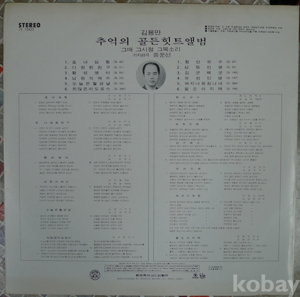 1975년 가수 김용만 추억의 골든 힛트 앨범 음반 LP