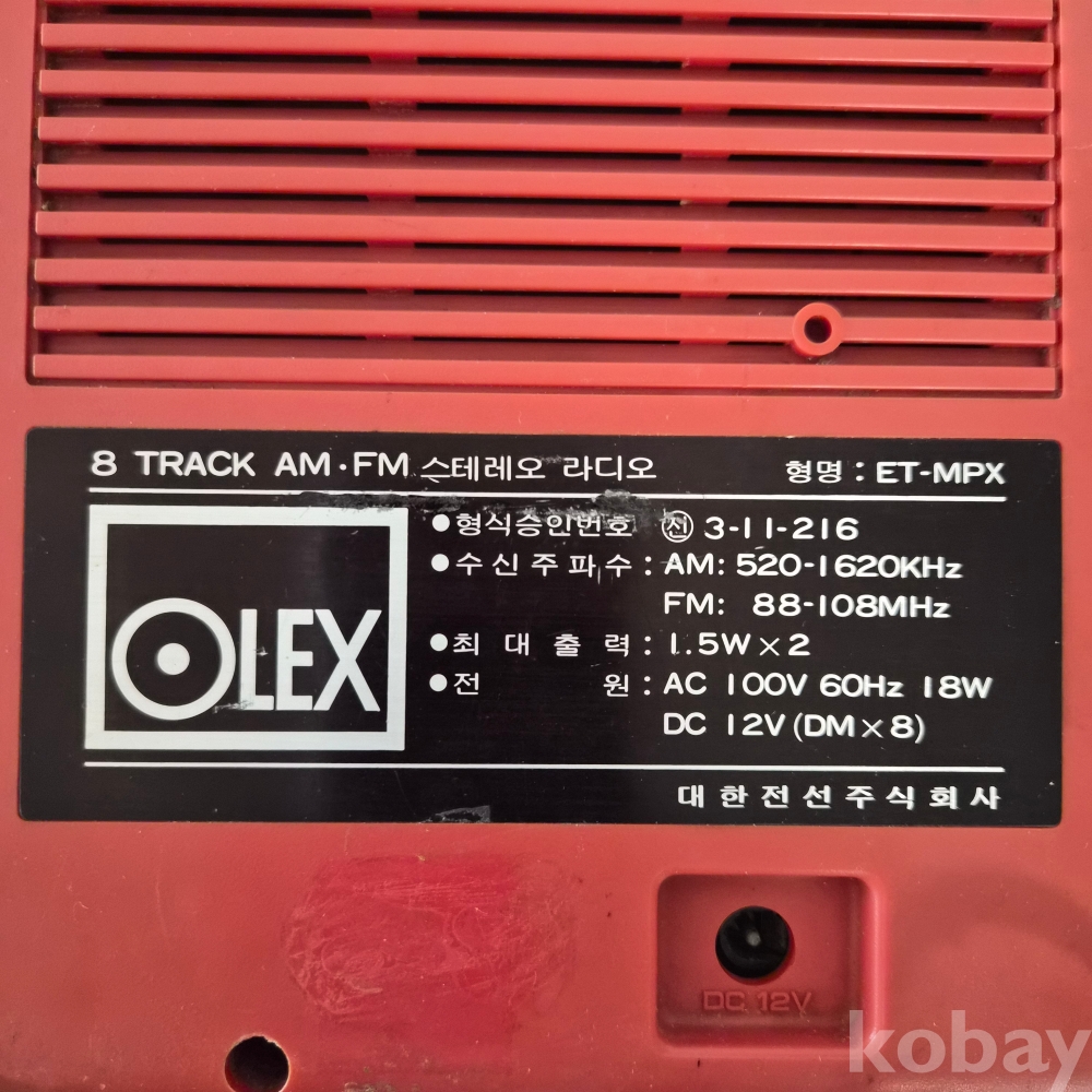 대한전선 ‘OLEX’ ET-MPX型 8 TRACK AM/FM 스테레오 라디오 이며