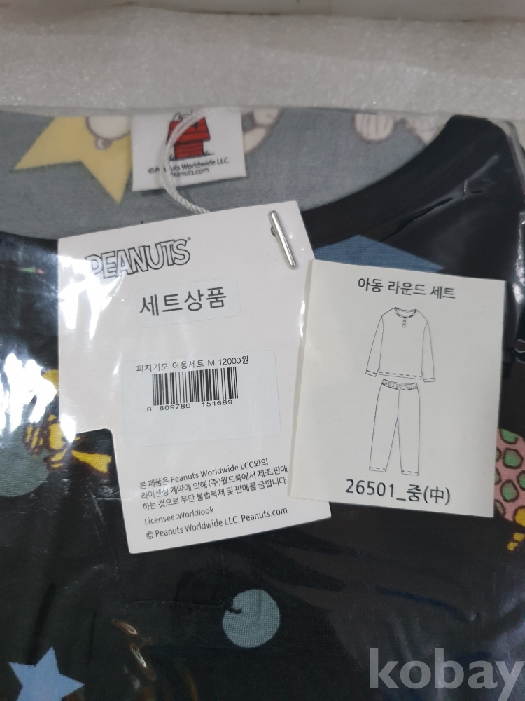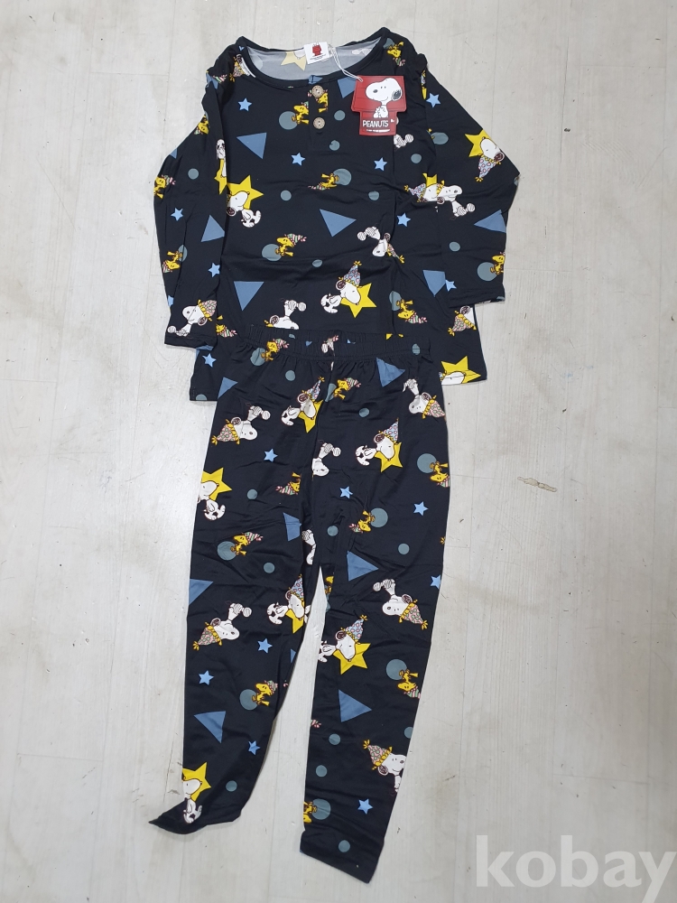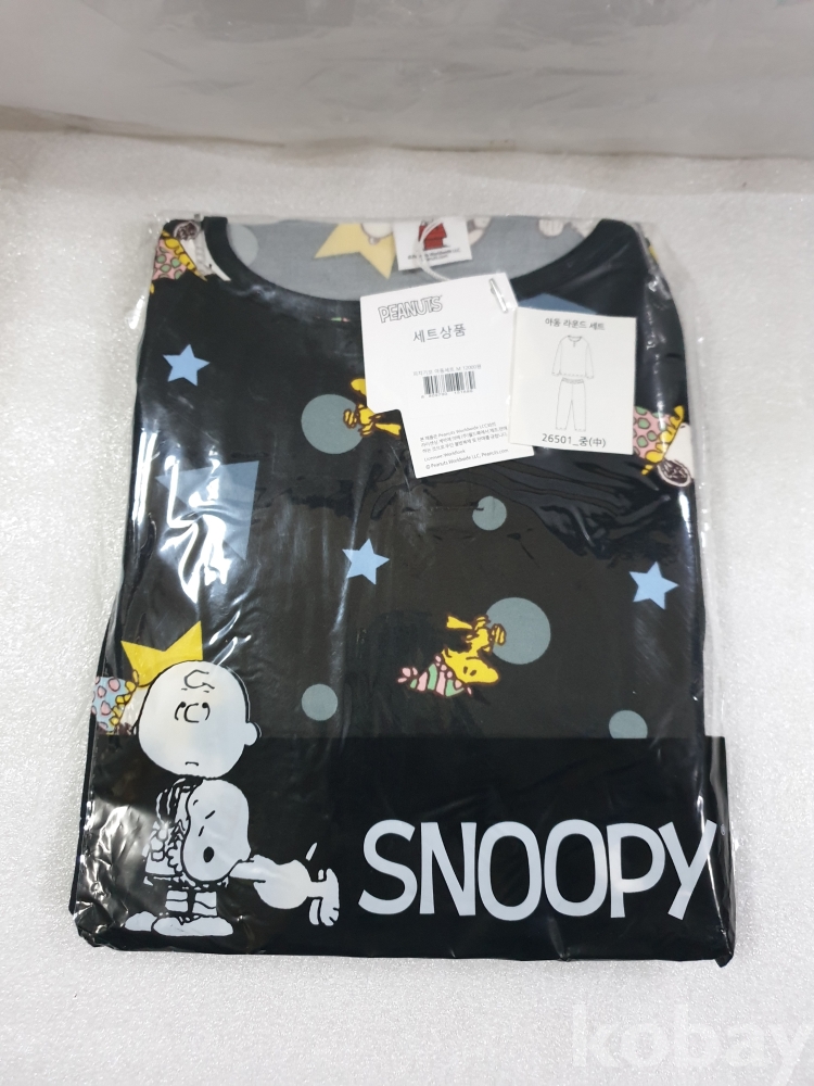 {천원경매}4-2047 피너츠 아동 피치 기모 세트 블랙 (F사이즈) 비닐 파손