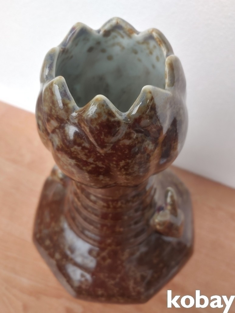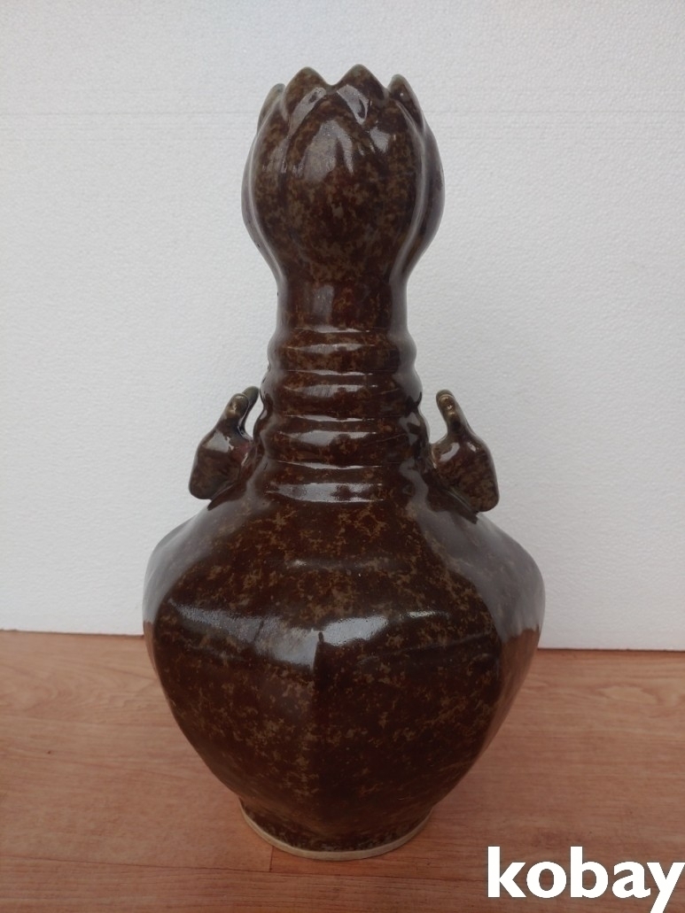 연꽃 봉오리가 있는 8각 양이 도자기 입니다.