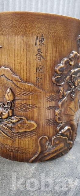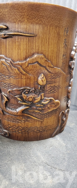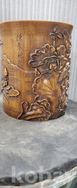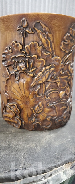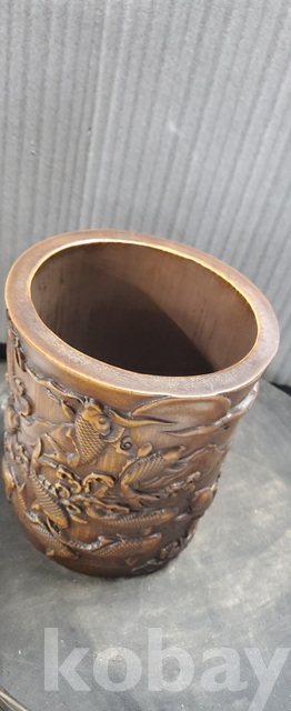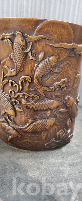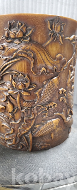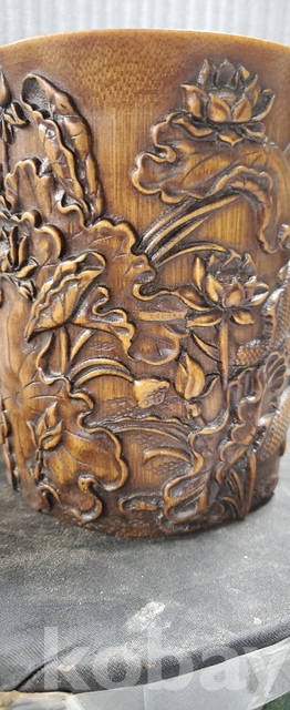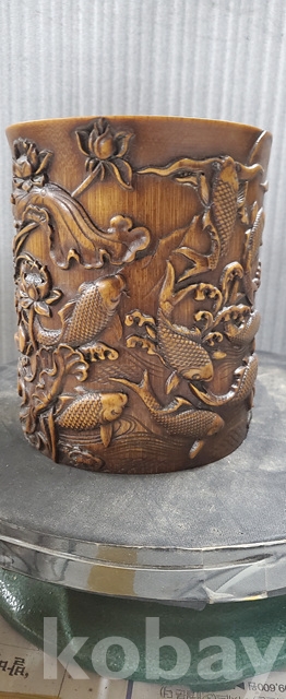 a-160.조각이 양각으로잘된 대나무 필통 연화와 물고기