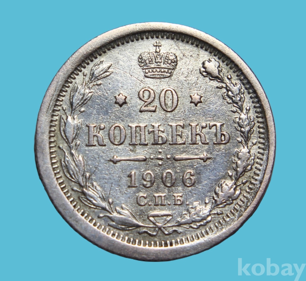 제정 러시아 20코펙 1906년 니콜라이 2세 은화 (사용제)