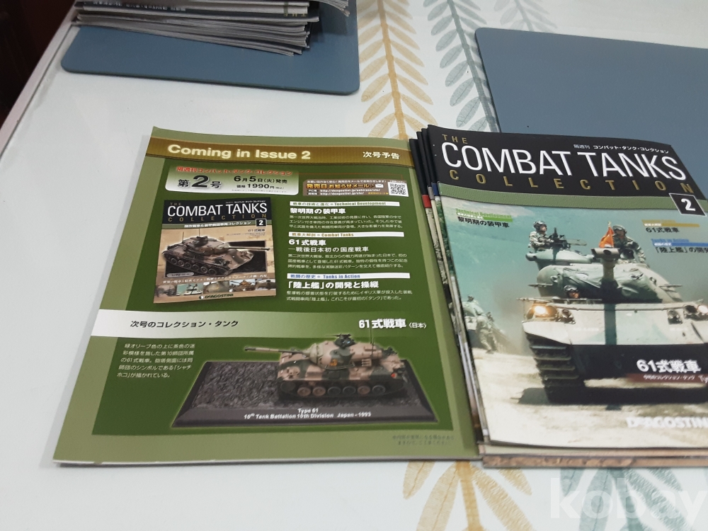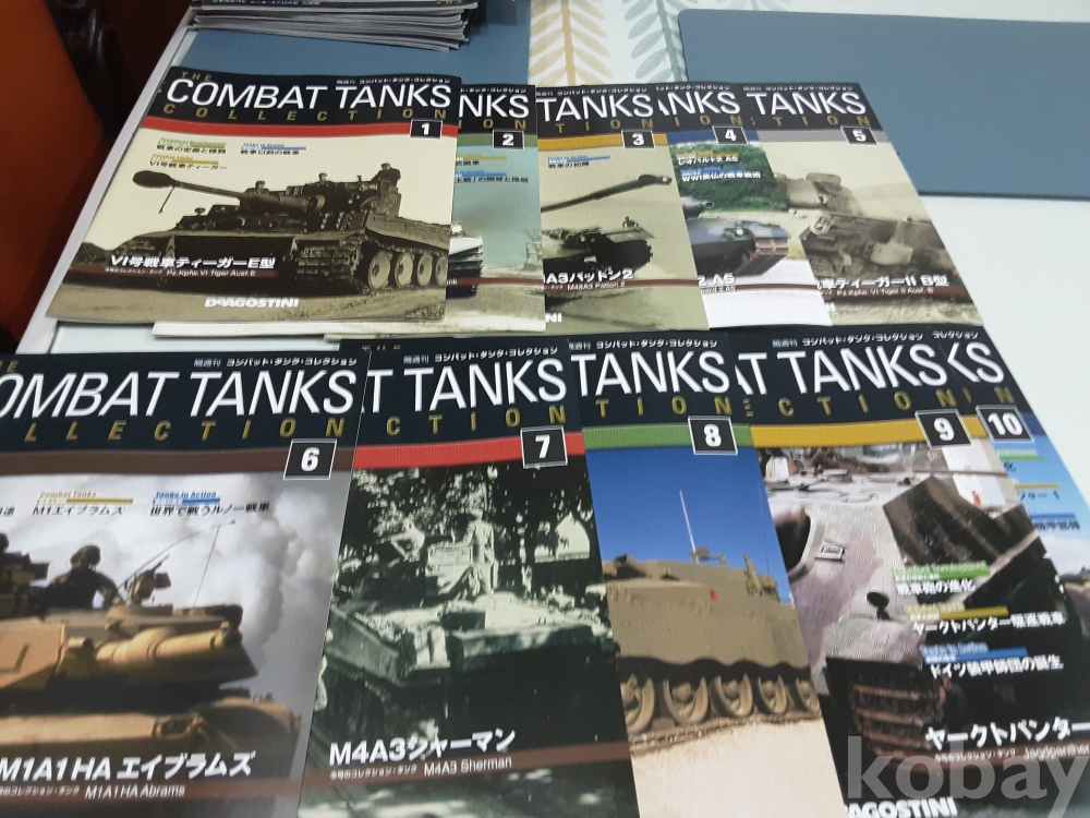 1. 데오고스티니(DeAGOSTINI) 전투 탱크 컬렉션은 다양한 국가의 제2차 세계 대전 및 냉전 시대를 대표하는 탱크들을 정교하게 재현한 1:72 스케일의 모형 120종 시리즈로 각 모델에는 디스플레이 케이스, 탱크모형과 잡지가 함께 제공된다. 전세계적으로 수집가들에게 인기가 많은 데오고스티니(DeAGOSTINI) 탱크 모델 해설서인 잡지 전 120종 판매.