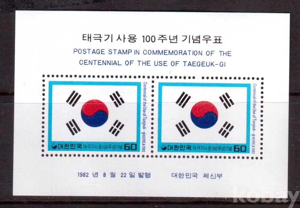 (한국시트) 1982.8.22 태극기사용 100주년 sheet of 2 MNH