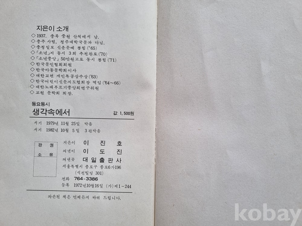 발행 정보: 1979년 초판 발행, 본 물품은 1982년 10월 5일 발행된 3판