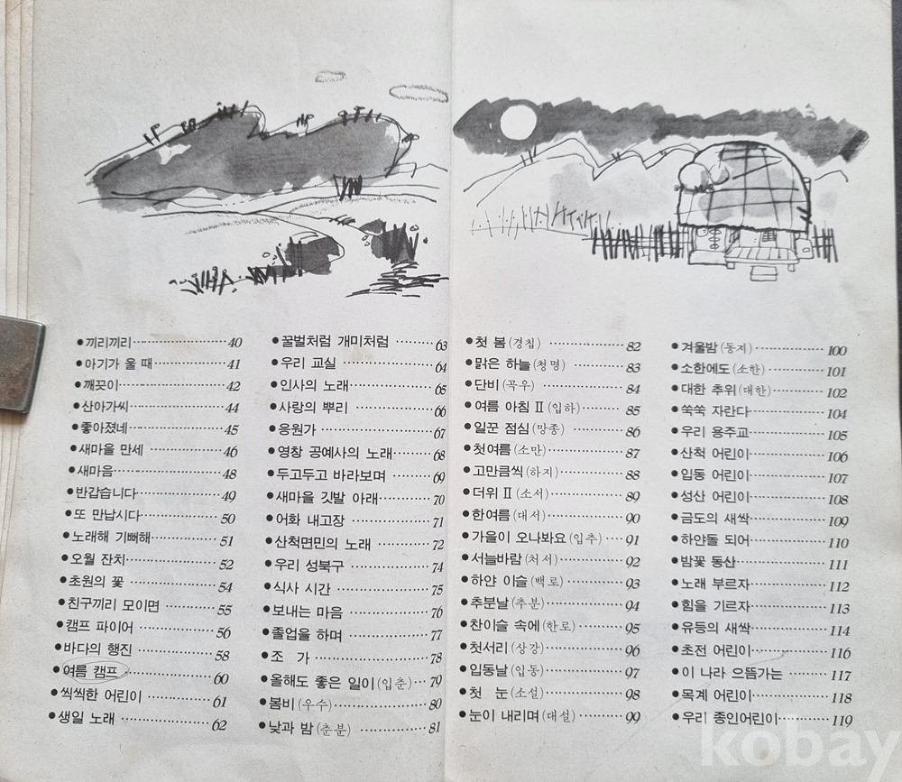 내용 구성: * 동요 32점, 건전가요 29점 등 총 100편의 작품 수록.