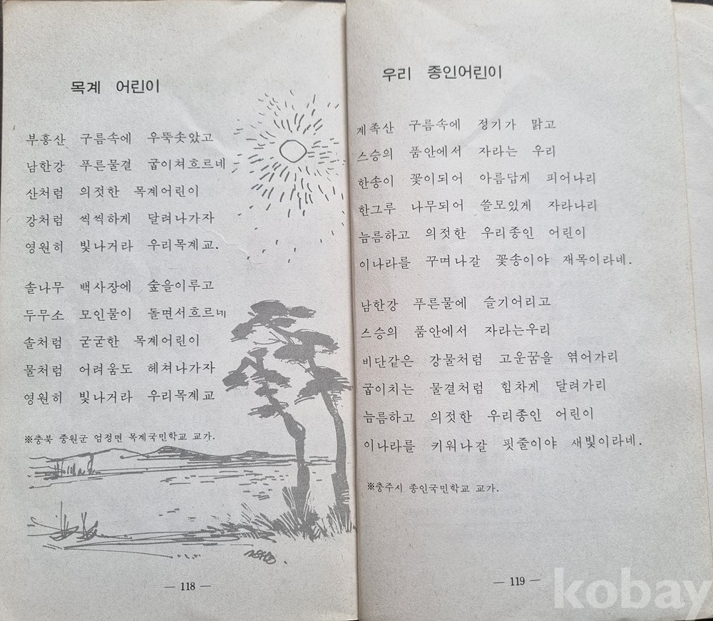 충주 지역 학교(목계국민학교, 종인국민학교) 교가 가사 등 향토색 짙은 자료가 포함되어 있습니다.