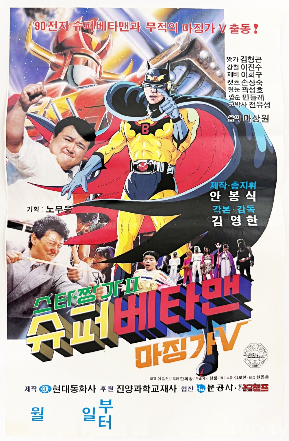 상품 설명 | 1990년 개봉한 실사 액션 및 애니메이션이 혼합된 아동용 SF 영화 '스타짱가Ⅱ - 슈퍼베타맨 마징가 V' 포스터이다. | ||