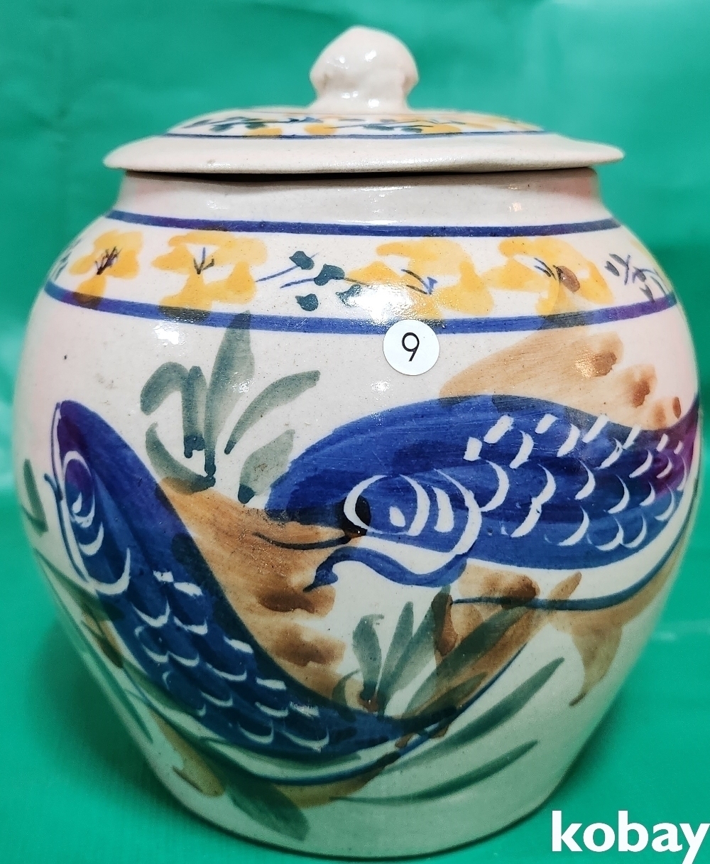 상태는 좋습니다, 두마리의 물고기가 수초와 함께 어우러진 도안입니다,