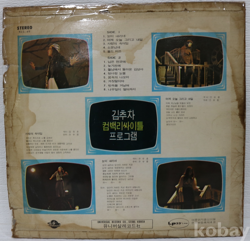 | 자켓상태 | G : 눈에 띄는 손상, 테이프, 필기 존재 | 음반상태 | VG : 생활 기스 다수, 가벼운 노이즈 존재 | 발매정보 | 초반 | 가사지여부 | 유 |