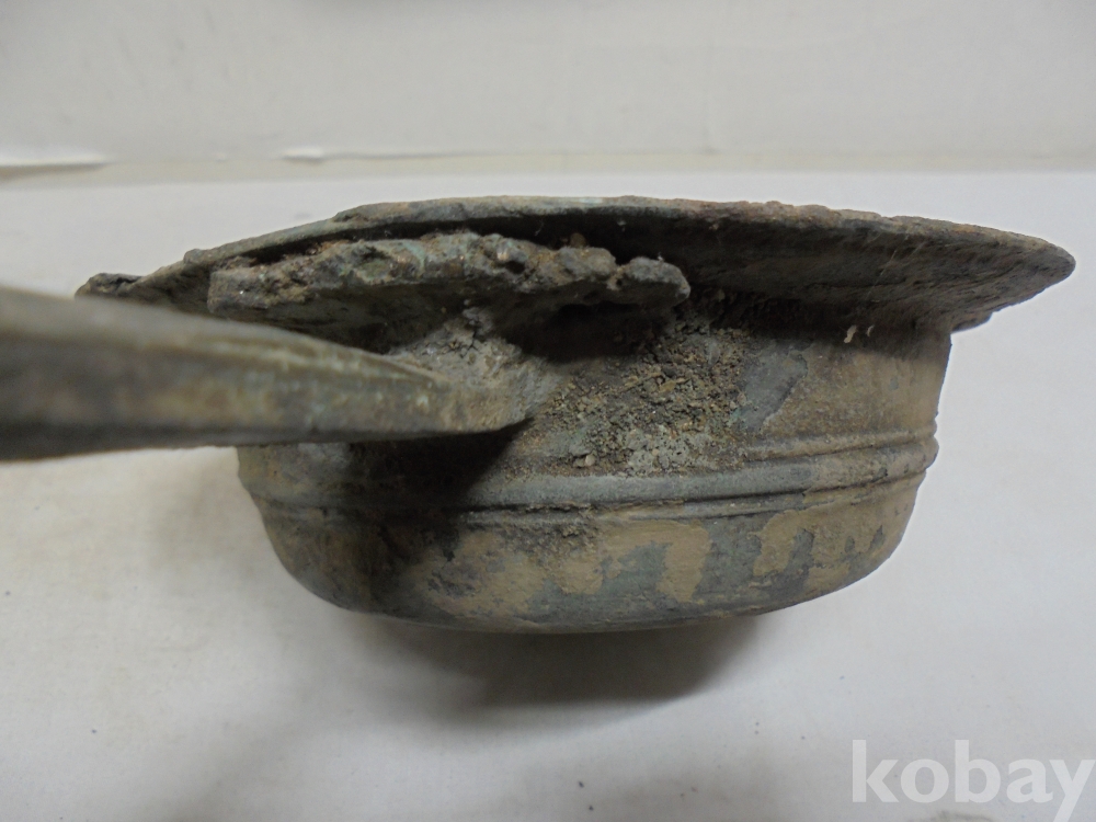 고려시대 청동기물들은 대부분이 두드려만든 단조가 많은데 이초두는 주물기법으로 만든 것같읍니다