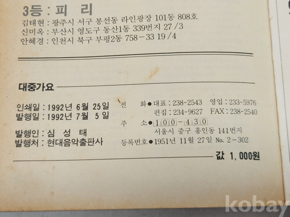 | 제조국 | 한국 | 연대 | 1980년~1999년 |