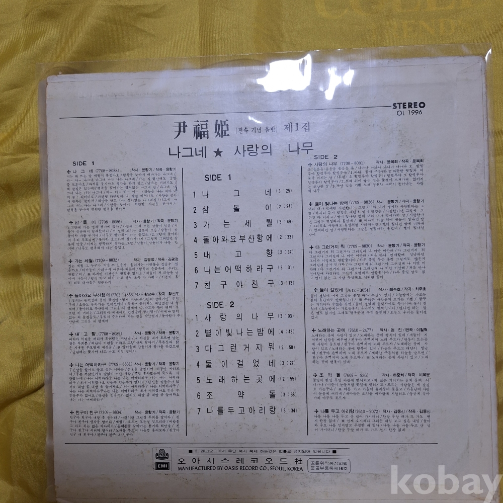 **년도(년식)이 있는 중고 음반이라 작은 팀과, 사진상 엷은 스크릿치는 잘 안보일수 있고