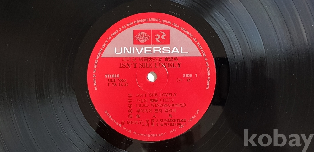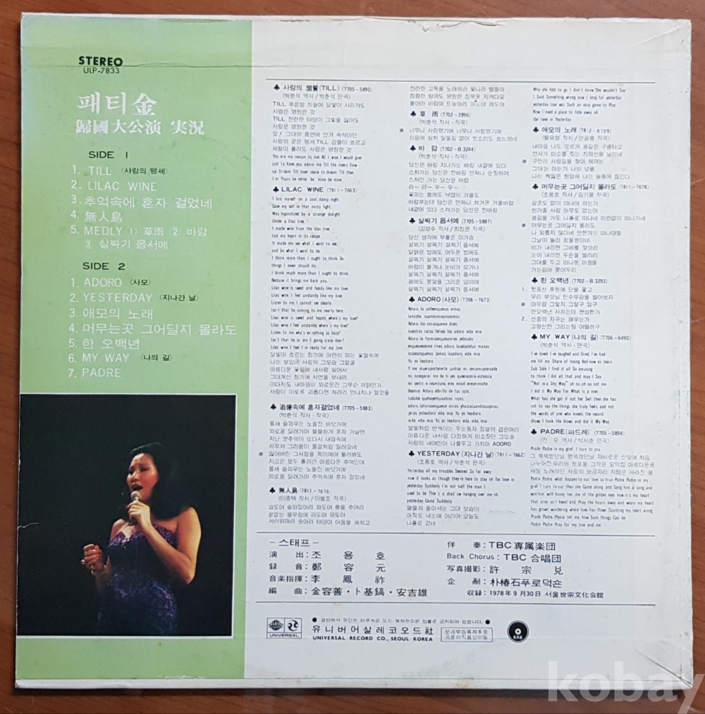 1978년 가수 패티김 귀국 대공연 실황 음반 LP