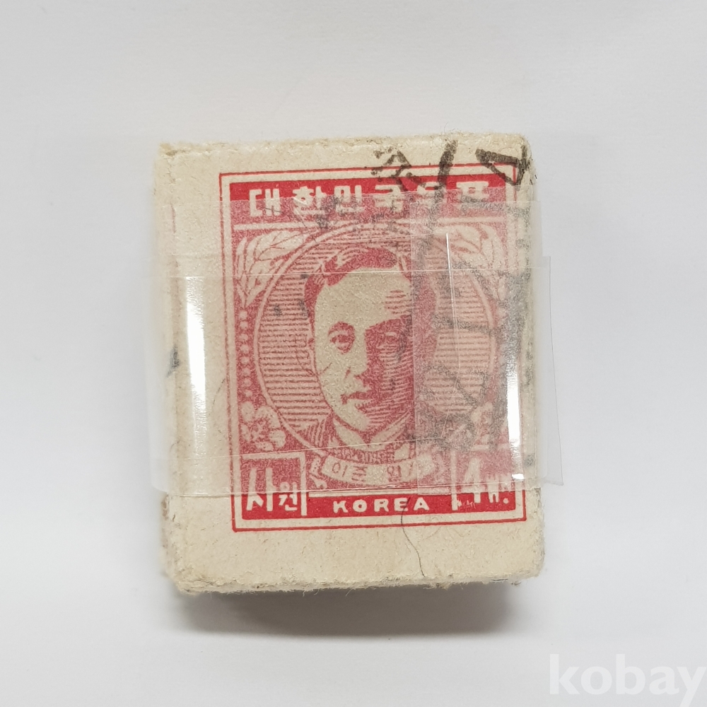 - 1948년 제 1차 원화 이준열사 4원 보통우표 일부인 미확인 사용제 우표 약 100매 묶음