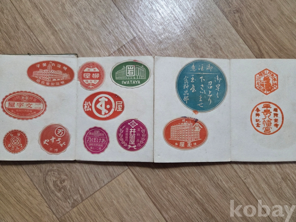 일제강점기 스템프 라벨 책자 조선 경성 백화점 정자옥.삼월 삼중정,대구 부산 금강산 조선관련 약 30여점 수록
