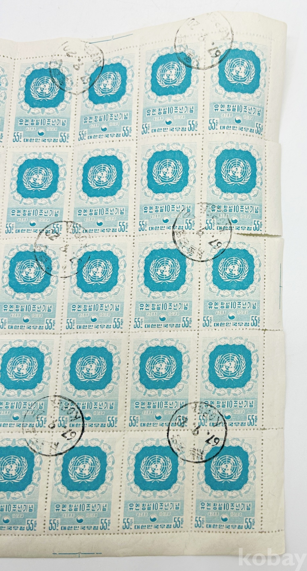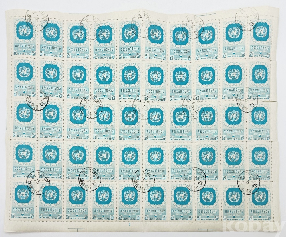 상품명 | 유엔 창설 10주년 기념 우표 전지 50매 | ||