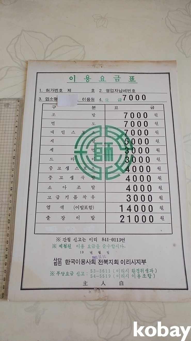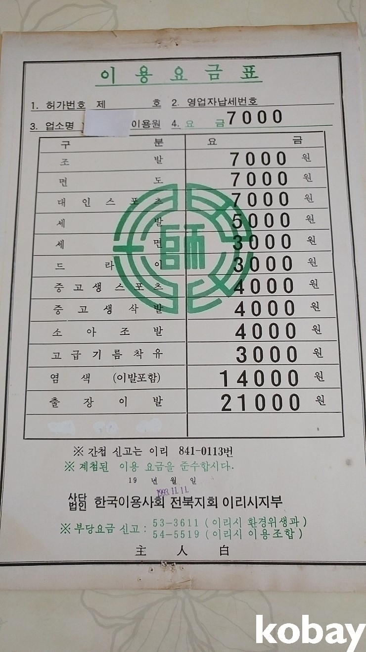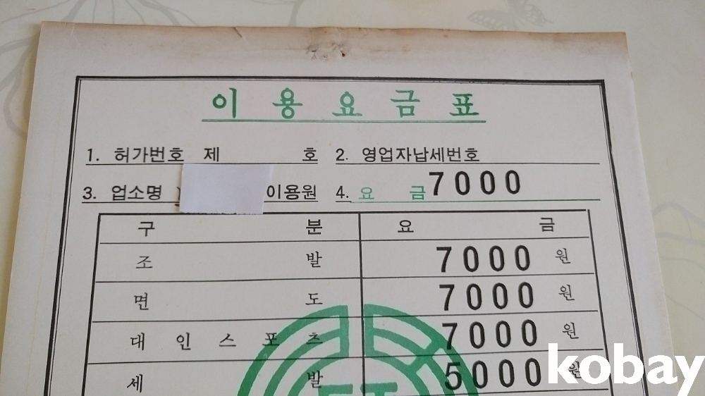 추억의 동네 이발소 가격표입니다