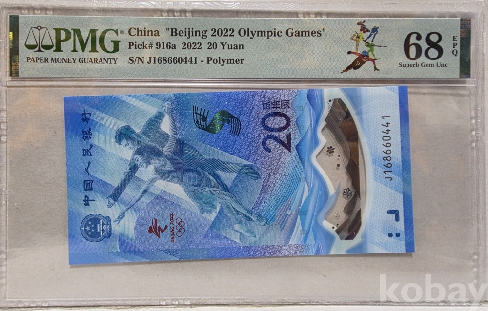-2022년 중국 동계올림픽 기념 지폐 PMG68 고등급 입니다.