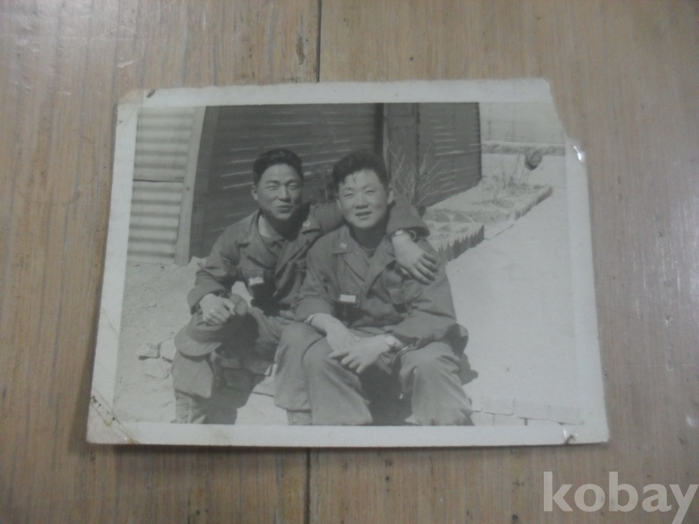 1313h)작은사진-50년대 막사 앞에서 전투복 입은 육사 생도들 사진.