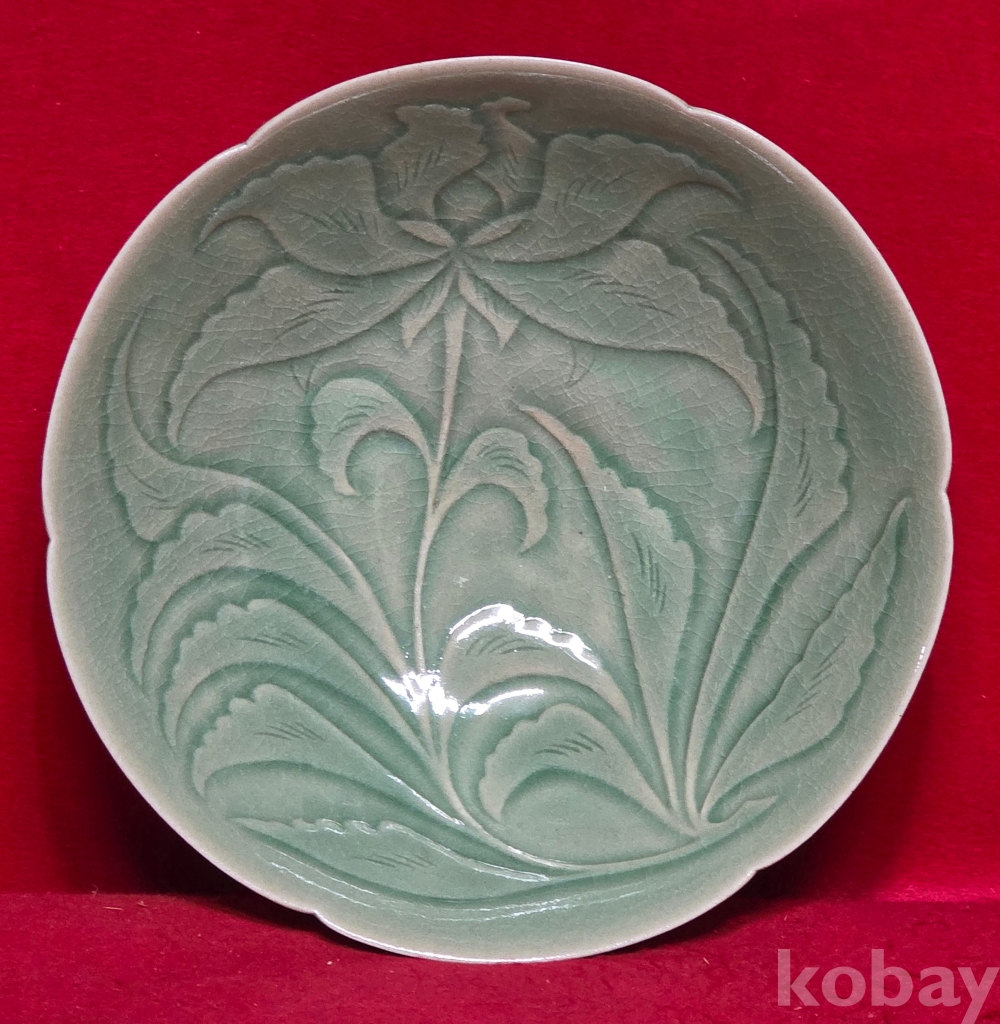 송남 신상호 선생님의 청자 양각 초화문 화형 대형 발 입니다