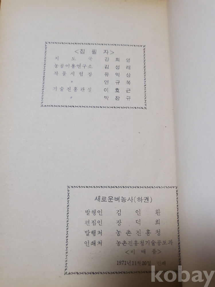 1. 새로운 벼농사(하권), 농촌진흥청, 1971년, 95쪽, 비매품, 상태 중, 사진 참조