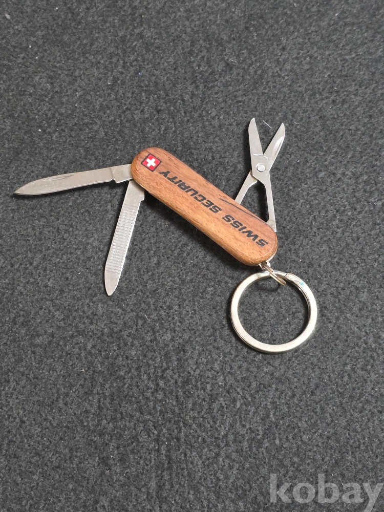 (((관광기념품/키홀더/키링/열쇠고리))) 오래전 SWISS SECURITY 관광기념 원목 다용도 나이프 키홀더