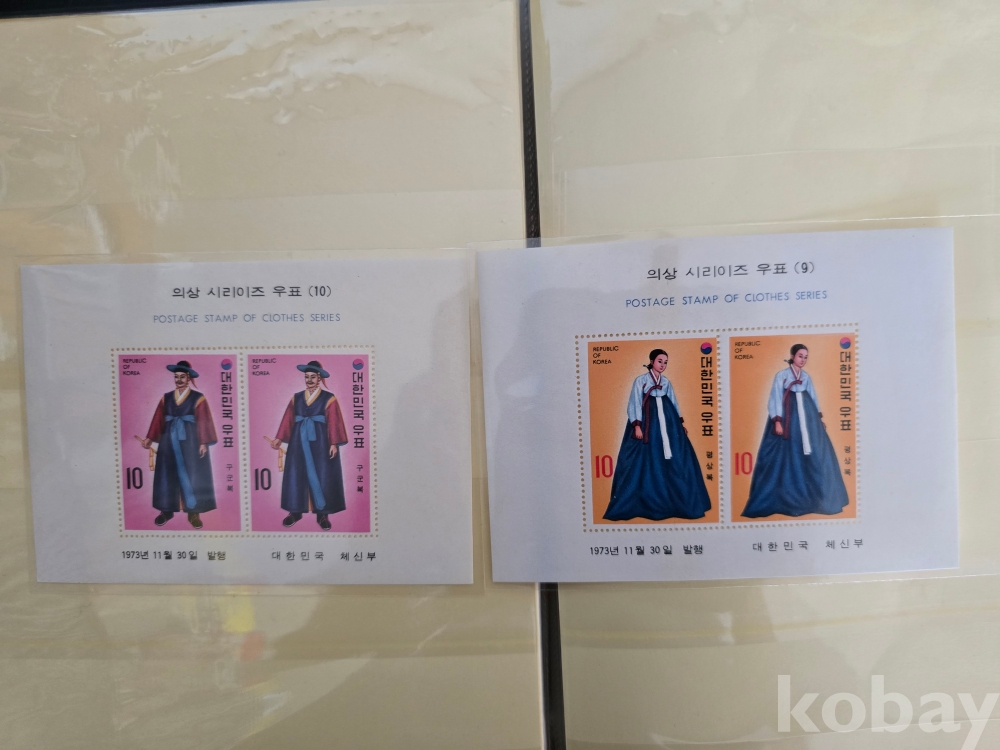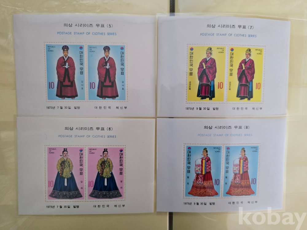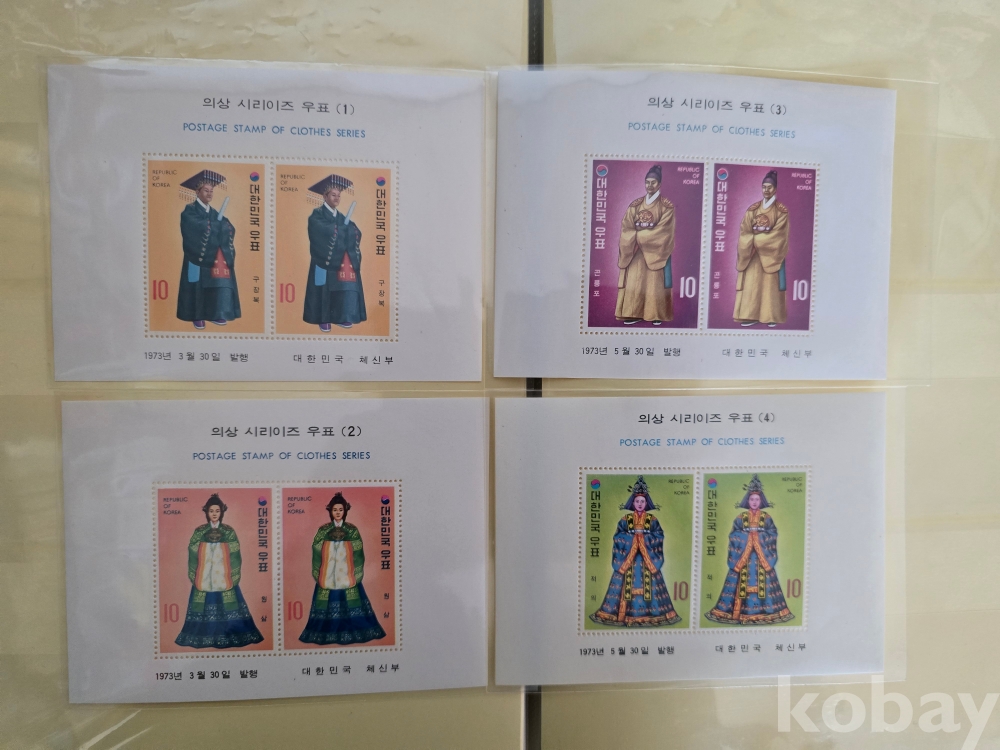 미사용 우표 시트/ 73.3.30.의상시리즈시트10종