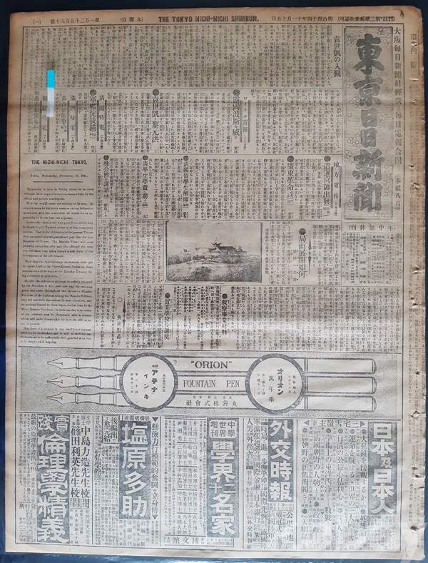 魚市場開場(元山) 관련기사가 실린 東京日日新聞 (1911.11.15.)