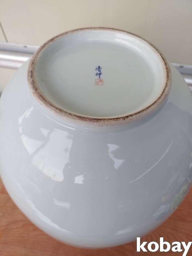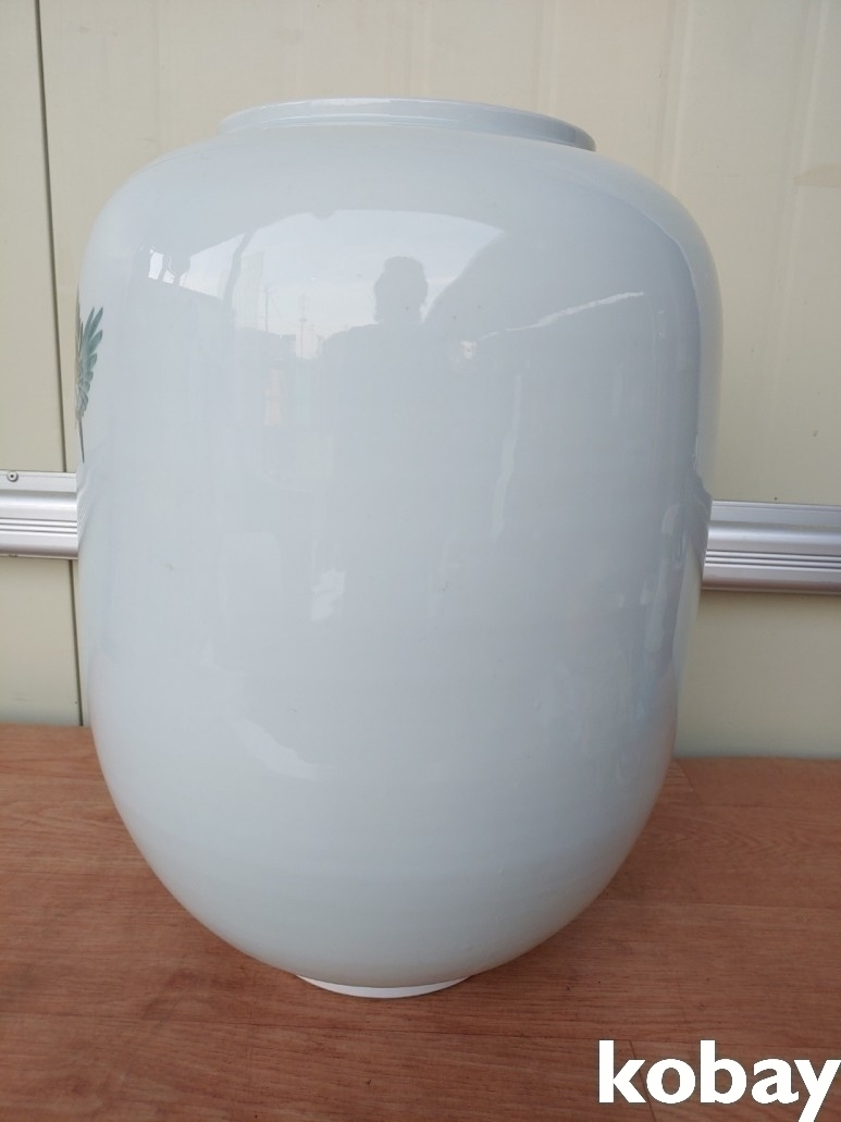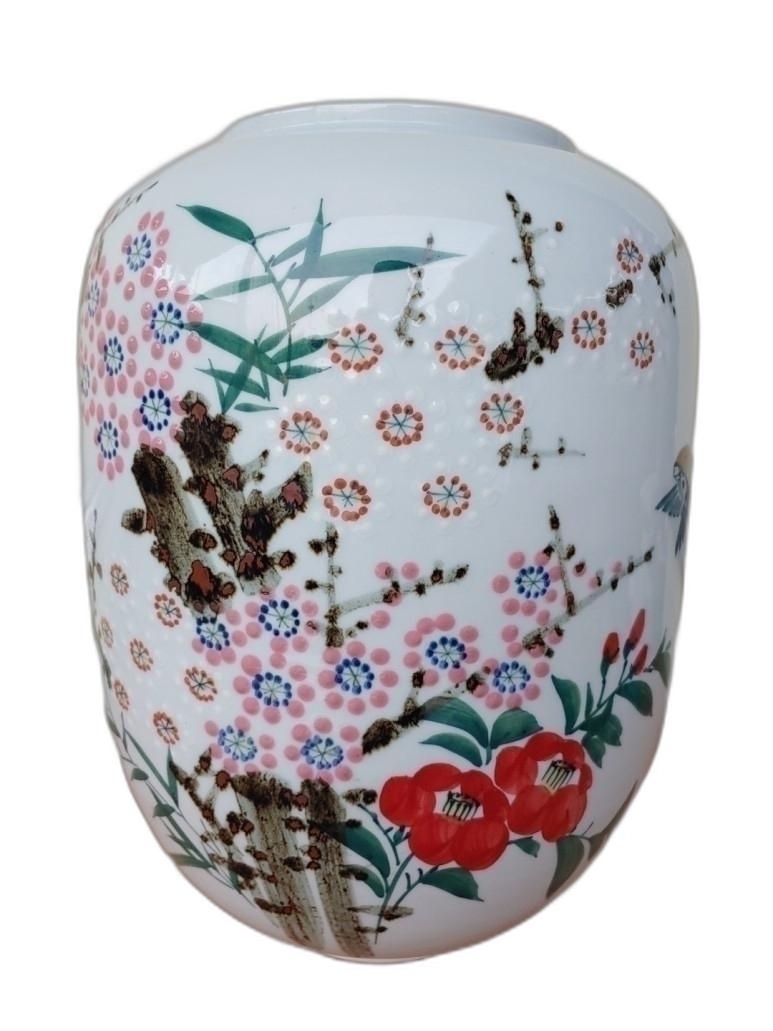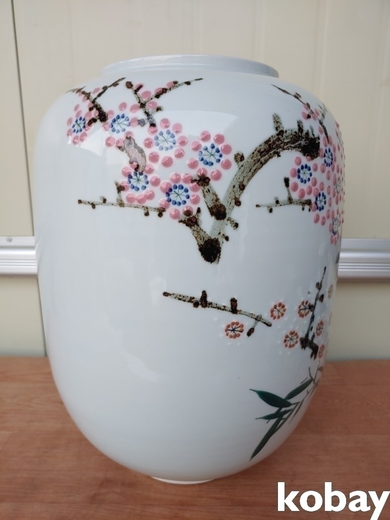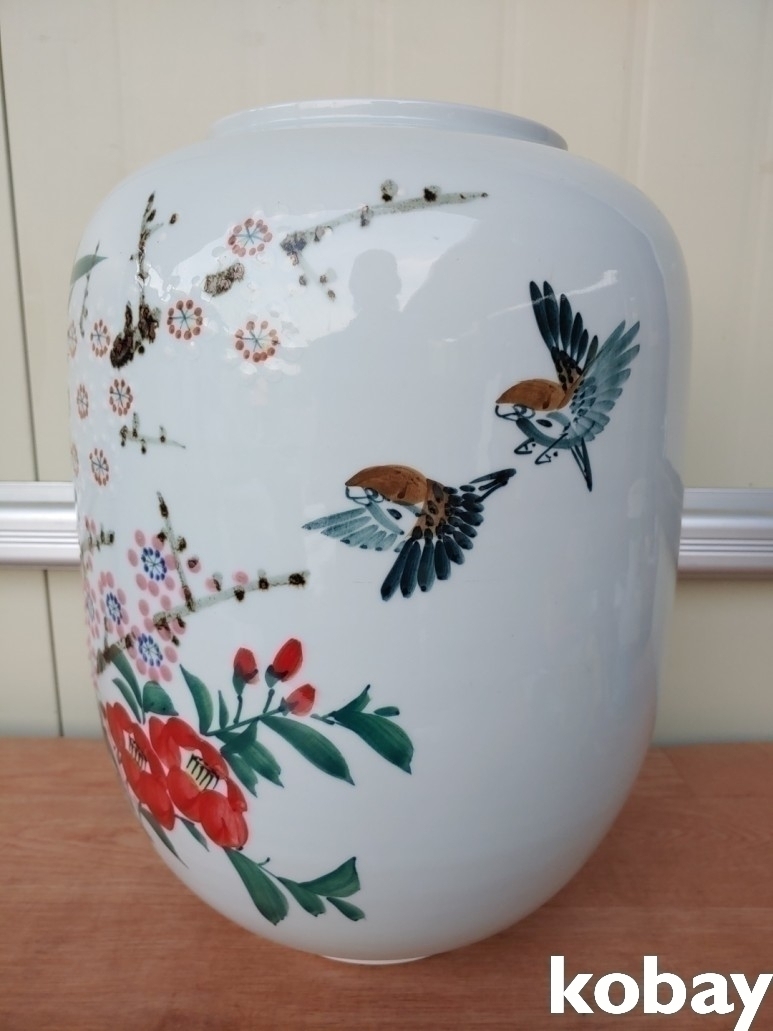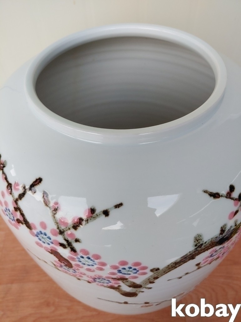 매화꽃에 새가 표현된 대형 도자기 입니다.
