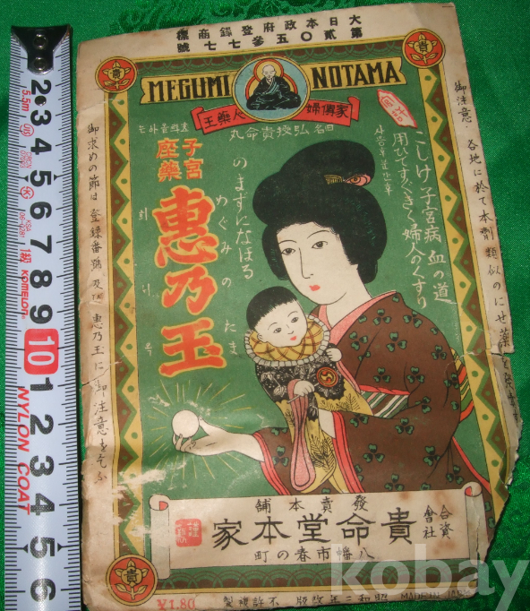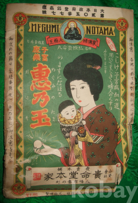 일본 貴命堂本家 제조품으로, 포장 전면에는 여성과 아기 도안,