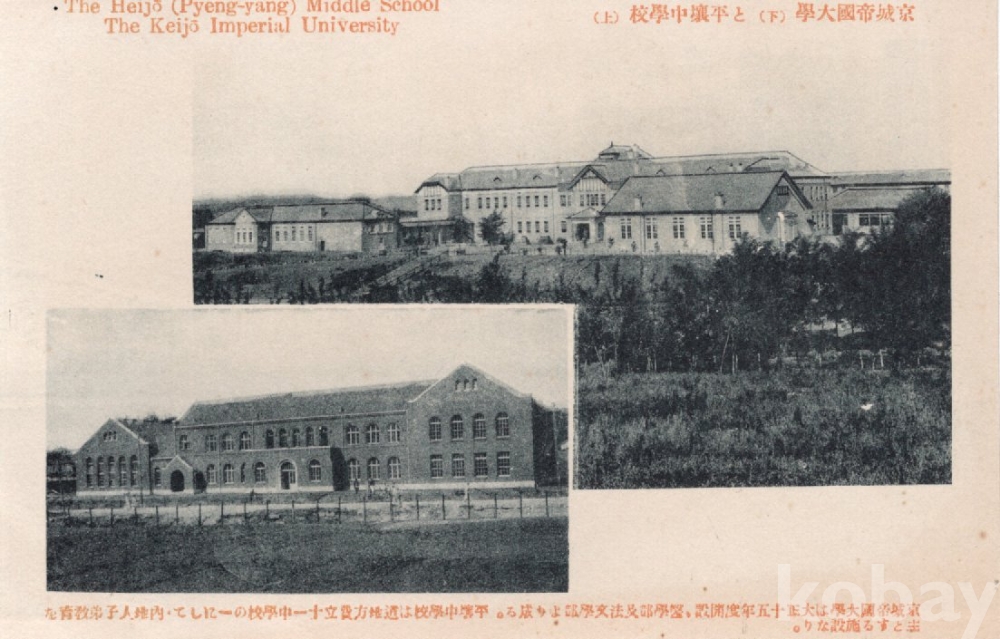 평양중학교와 경성제국대학 2장의 학교 사진이