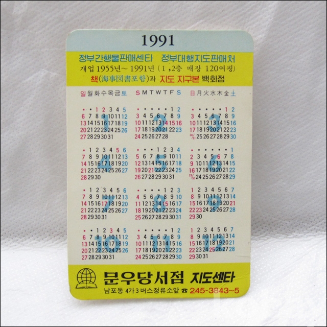 문우당서점 1991년 캘린더 카드 (849)