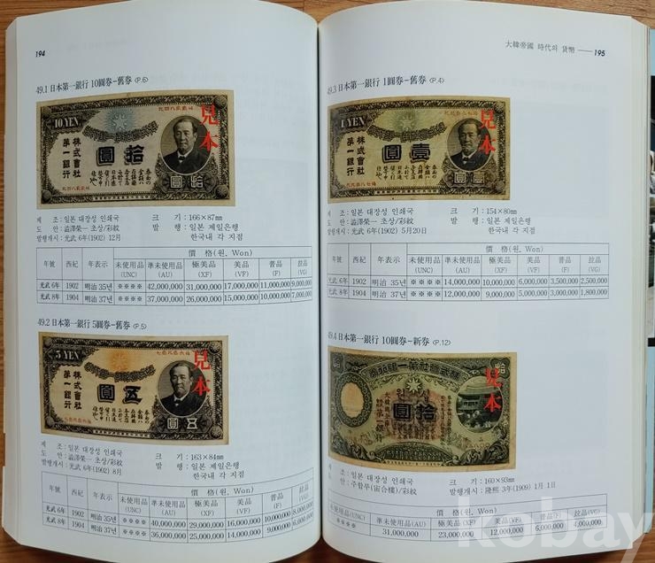 고려시대부터 현재까지 모든 화폐가 사진과 함께 가격이 평가 되어 있습니다.