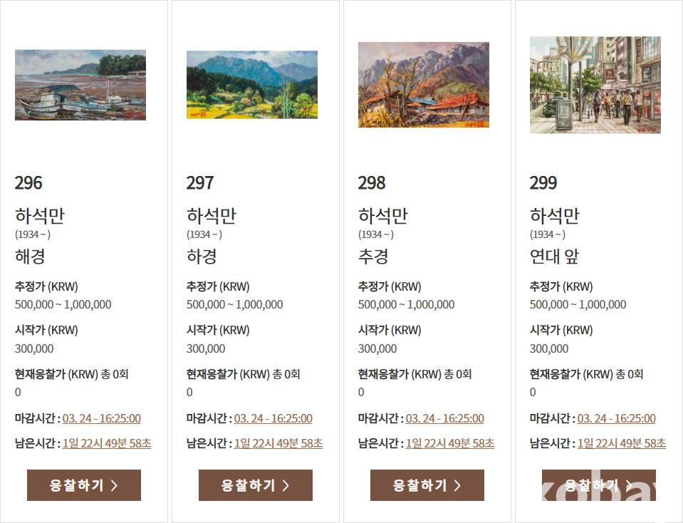 기타: 동일 작가의 최근 아이옥션 출품 사례 확인됨(사진 참조), 블로그 참고 https://blog.naver.com/hasmgallery/220279108695