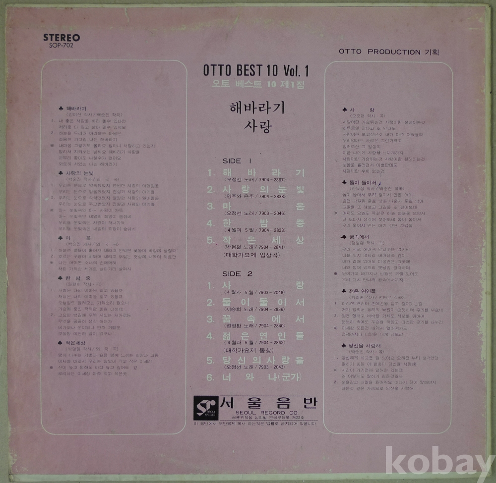 1979년 오토 베스트 10 제1집 해바라기 음반 LP