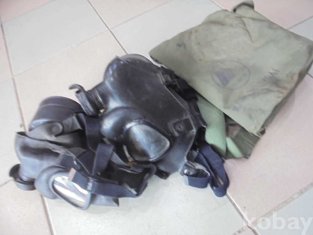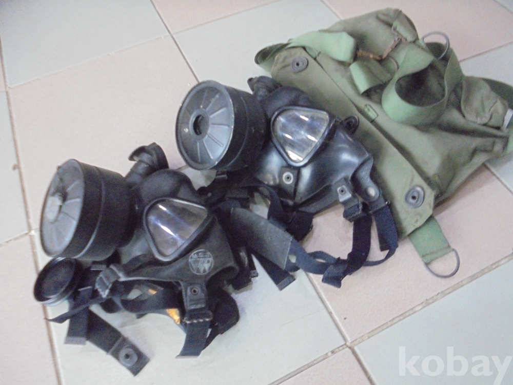 비상용으로 비치하는 특히 불났을때 하수구청소 냄새심한곳에 사용하는 고무등 자체이상없는 사용가능한 방독면 2점과 군용가방