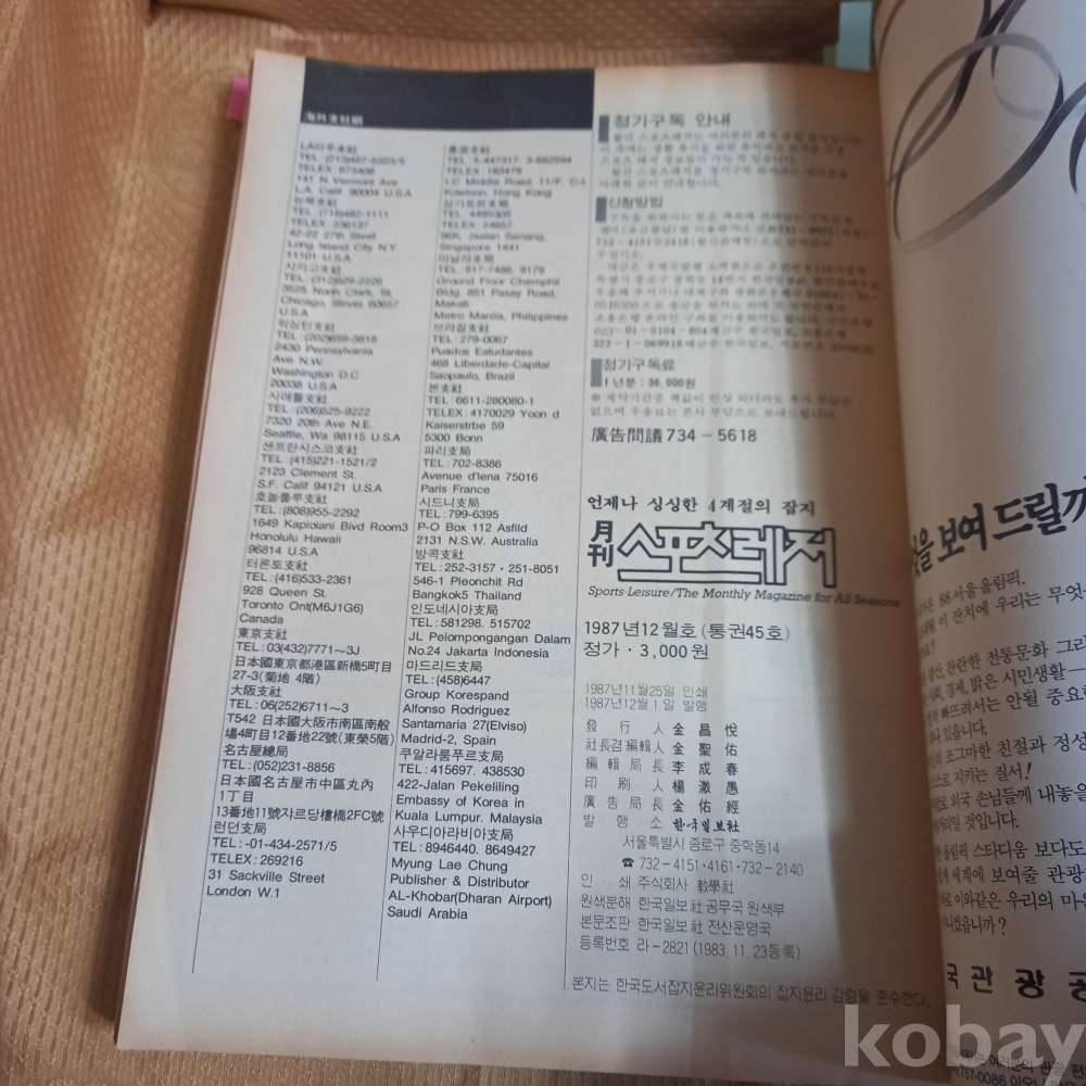 A 5533: 87년 12월 탤렌트 홍리나 표지의 "스포츠레저"